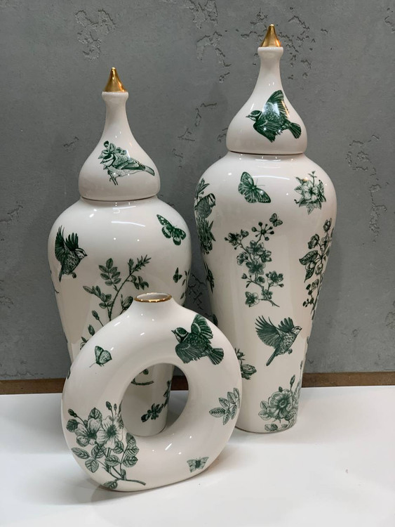 گلدان دونات گل و مرغ سبز