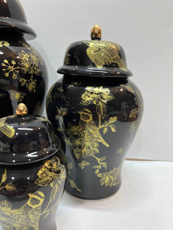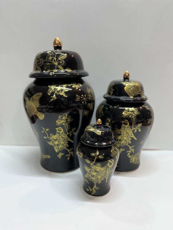جینجرجار مشکی گل و مرغ طلایی